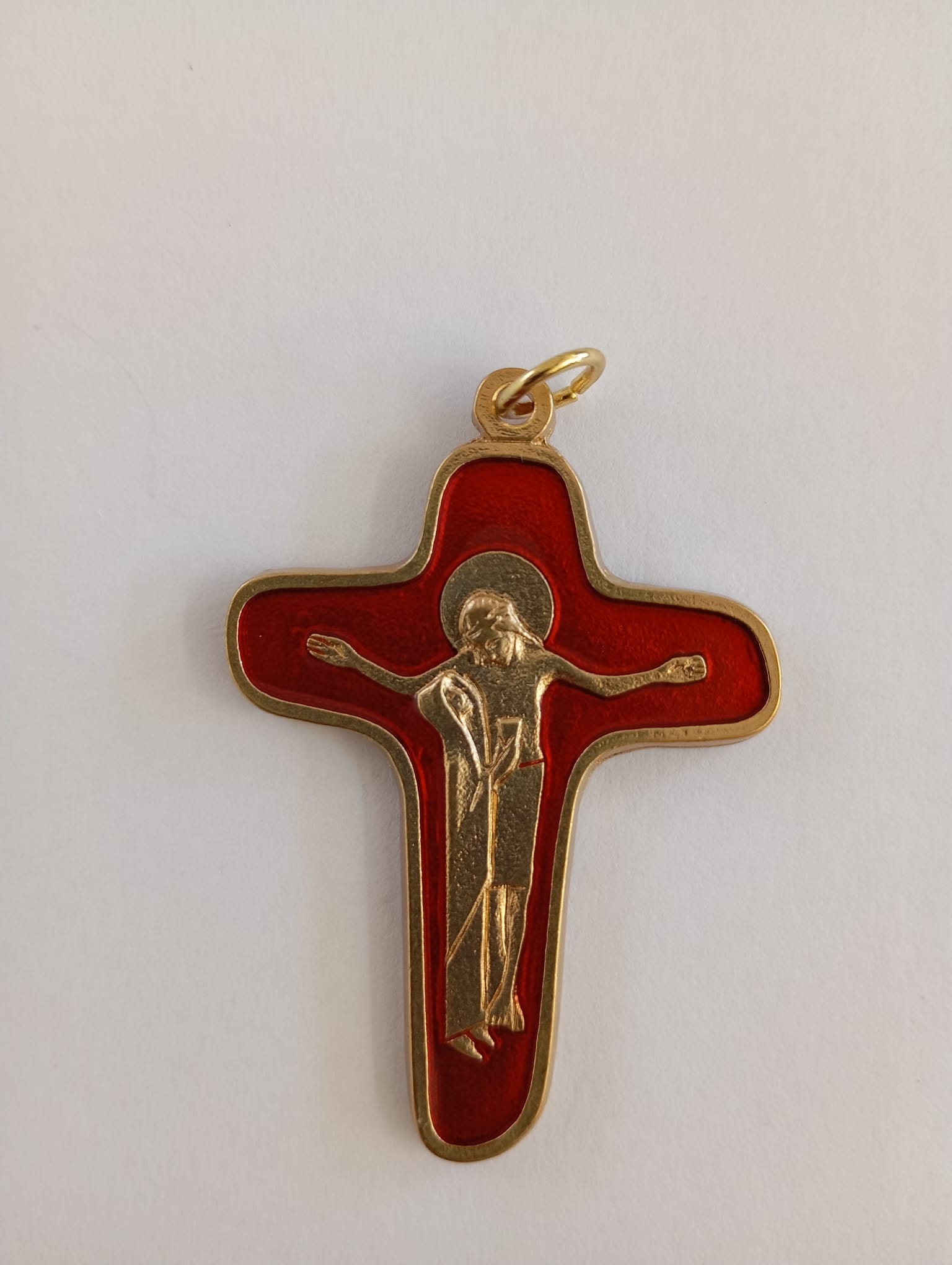 Cruz de la unidad dorada con el fondo rojo (4,50cmx3,50cm).