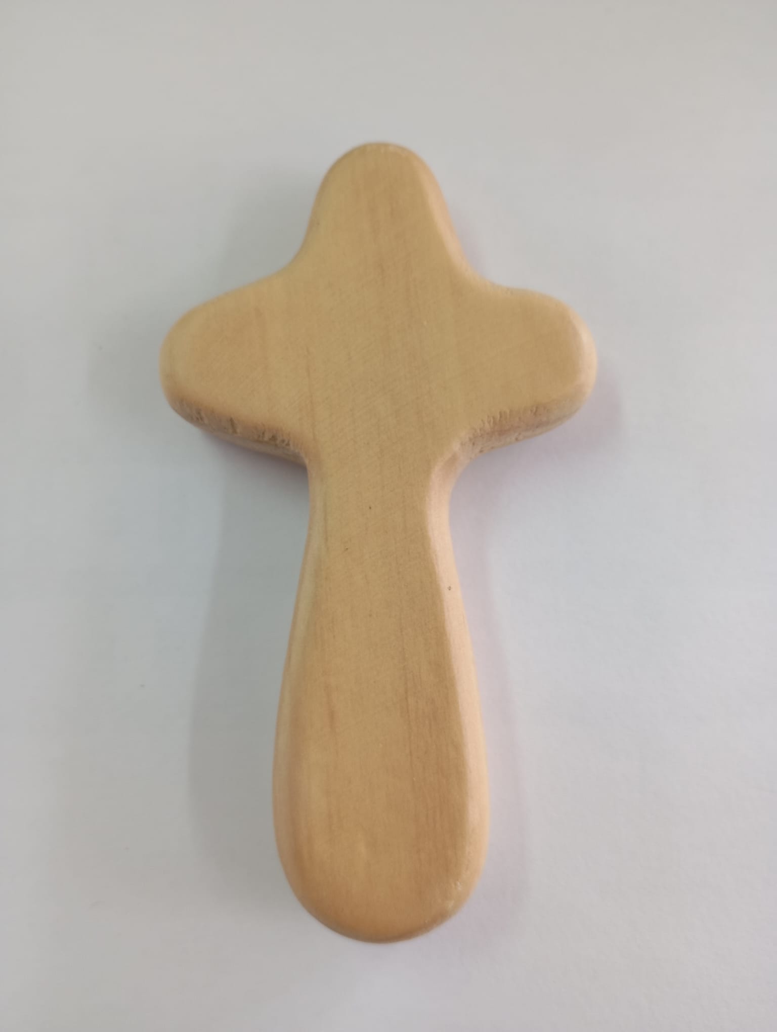 Cruz de madera clara (10cmx5,5cm) perfecta para enfermos ya que tienen los bordes redondos.